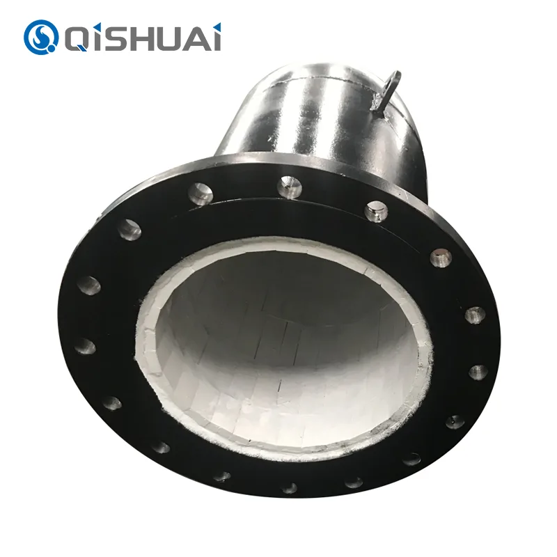 Схандонг Кисхуаи Веар-Ресистант Екуипмент Цо., Лтд. производи керамичке обложене колена, која комбинују ултра-високу тврдоћу, одличну отпорност на хабање и добру отпорност на корозију керамичких материјала са високом чврстоћом и жилавости металних материјала. Овај нови дизајн композитне структуре чини да наш производ може стабилно да ради у различитим врстама сложених и тешких радних услова. Може ефикасно да реши проблеме кратког радног века и честог одржавања колена који се широко користе у окружењима високог хабања, јаке корозије и високе температуре итд.